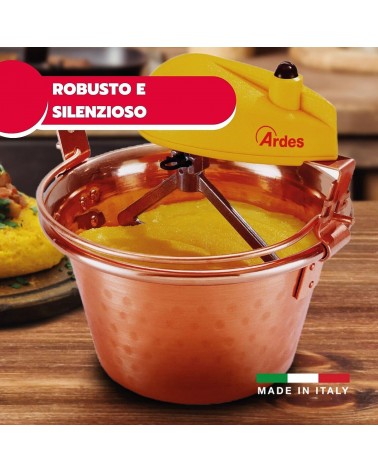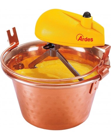 ARDES - AR24AM40 Paiolo In Rame Diametro 24cm Mescola Polenta Marmellata, Mescolatore con Motore Elettrico, Attacco a Baionetta Pulizia Facile, Girapolenta 2/4 Porzioni